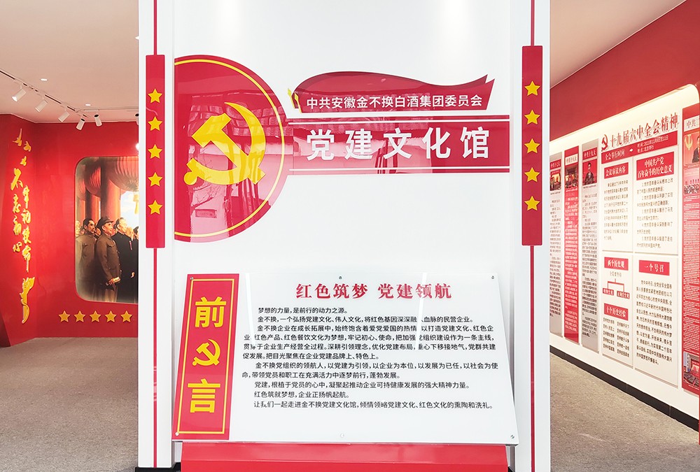 金不換黨建館的文化建設(shè)展示的內(nèi)容,突出了黨建引領(lǐng),回顧了金不換企業(yè)黨委帶領(lǐng)金不換白酒集團不斷發(fā)展壯大的歷史。金不換企業(yè)發(fā)展史正契合了我國從改革開放到進入新時代的全過程。40多年的發(fā)展變化,她所展示的內(nèi)容和前進的節(jié)拍,正融進了我國改革開放的每一個階段。金不換邁出的步伐緊扣時代的節(jié)奏,顯得是那樣的鏗鏘有力。耐讀、耐品、耐回顧。這就是金不換黨建館的價值之所在。